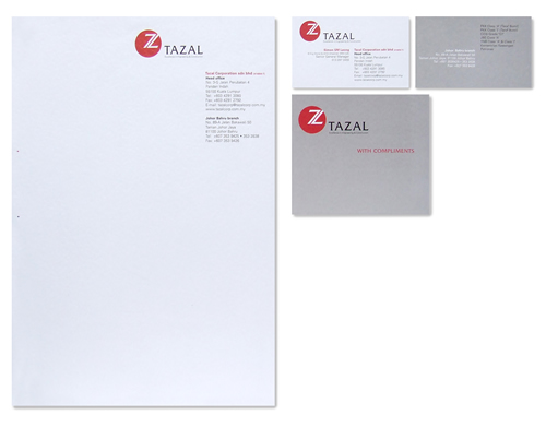 corporate identity Tazal is a construction company specializing in mechanical and electrical construction – with an existing identity – the letter ‘z’ in a square box. This identity was given a new look that reflects the company’s readiness to participate in an international business arena. |