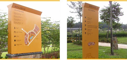 signage design A comprehensive signage and way-finding system was designed based on colour zoning, to differentiate between the various religious denominations of this huge cemetery complex. |